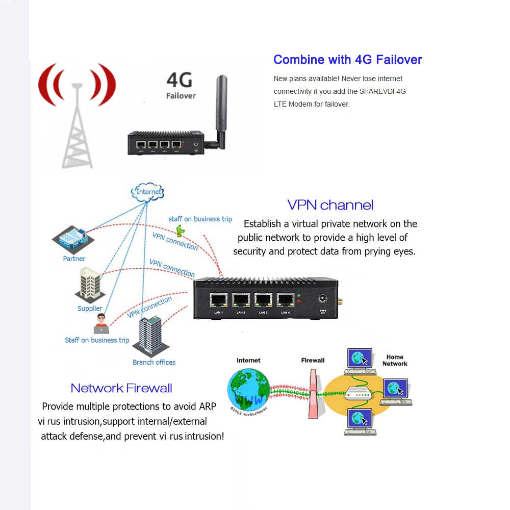 4 LAN Gigabit Ethernet Mini PC Firewall Router